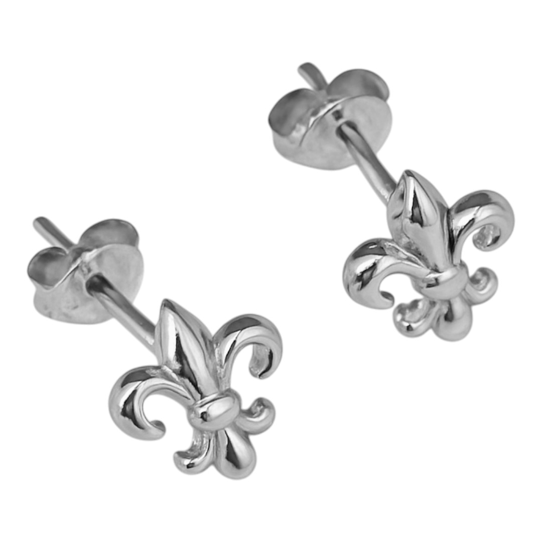 Fleur de Lys White Gold Plated Sterling Silver Stud Earrings – Elegant Women’s Jewelry Gift