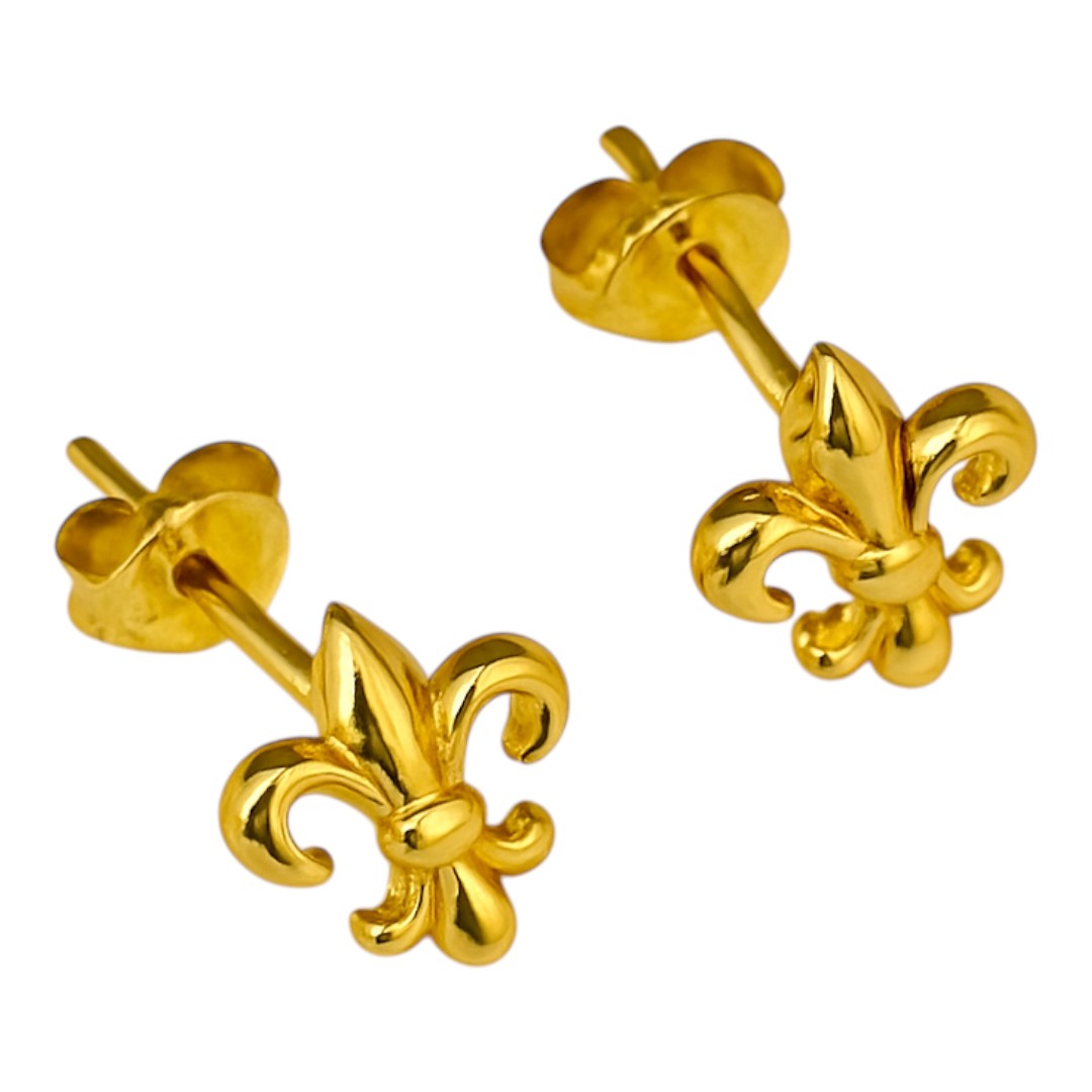 Fleur de Lys 18K Gold Plated Sterling Silver Stud Earrings – Elegant Women’s Jewelry Gift, Trendy Gold Earrings