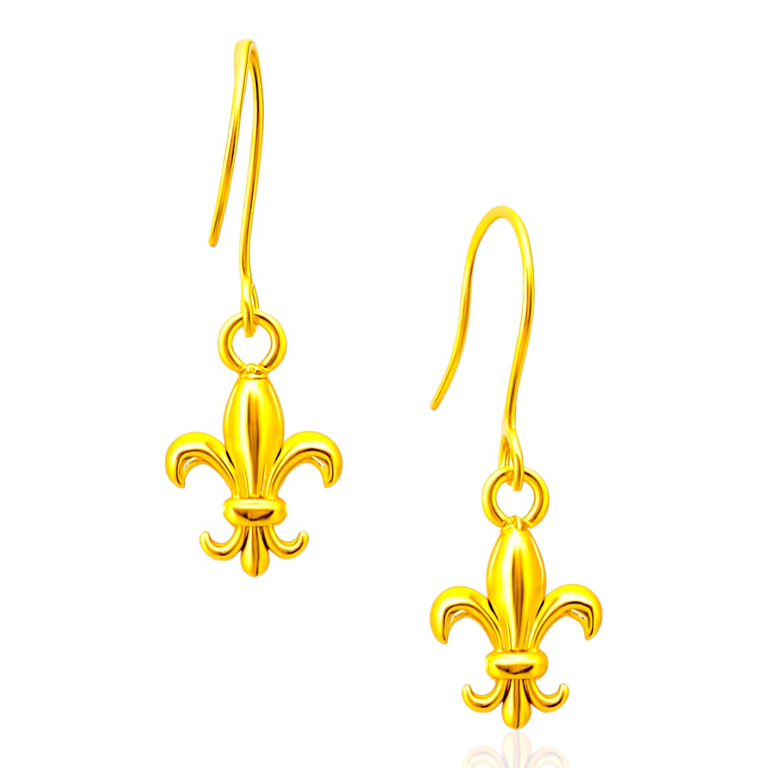 Fleur de Lys 18K Gold Plated Hanging Sterling Silver Earrings – Elegant Women’s Dangle Jewelry Gift, Trendy Gold Earrings