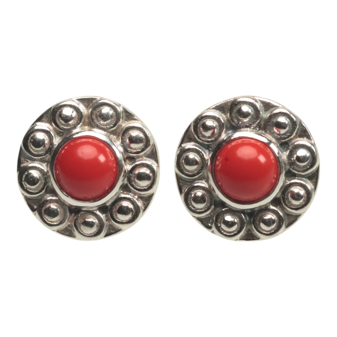 Elegant Sunflower Shaped Red Coral Earrings in 92.5 Sterling Silver | Unique Handmade Jewelry