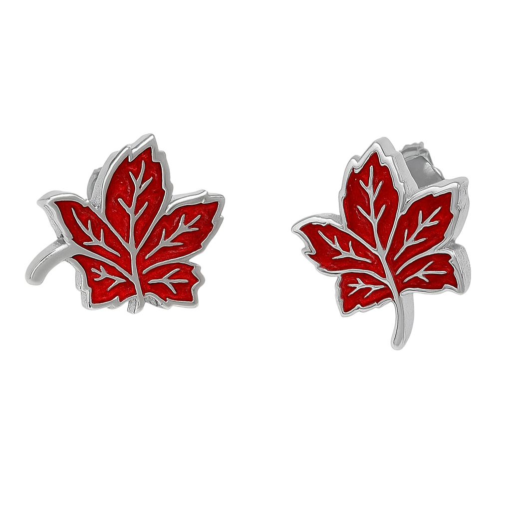 White Gold Plated Red Maple Leaf Earrings – Sterling Silver Enamel Jewelry for Women Gift