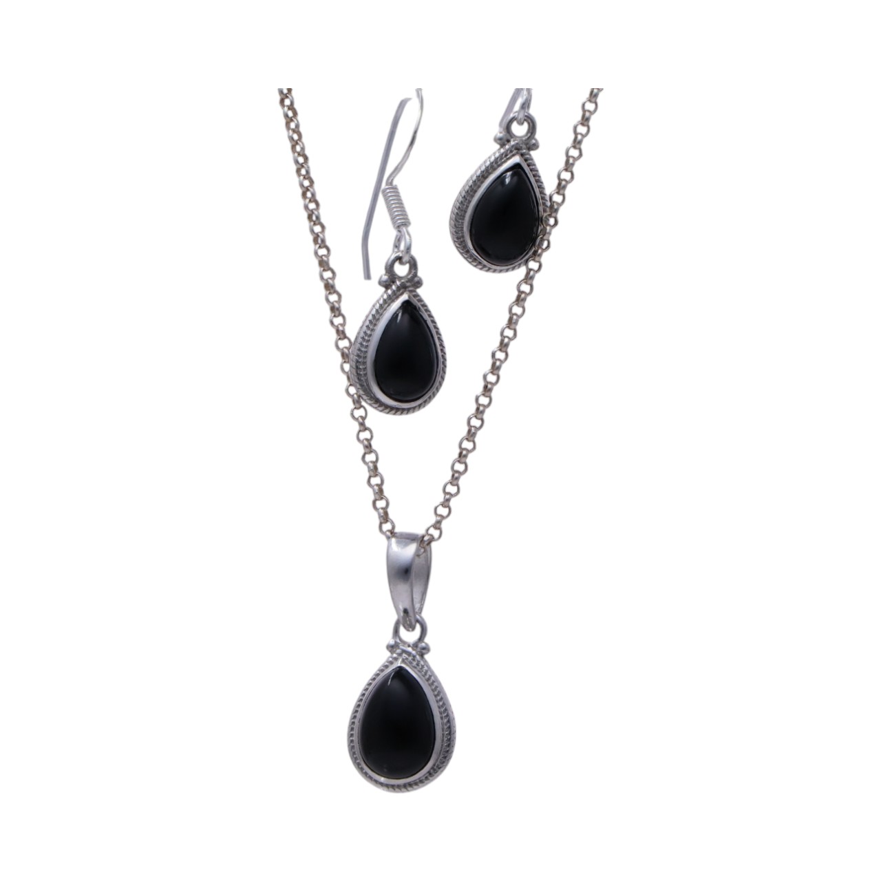 Sterling Silver Black Onyx Tear Drop Jewelry Set – Perfect for Any Occasion!