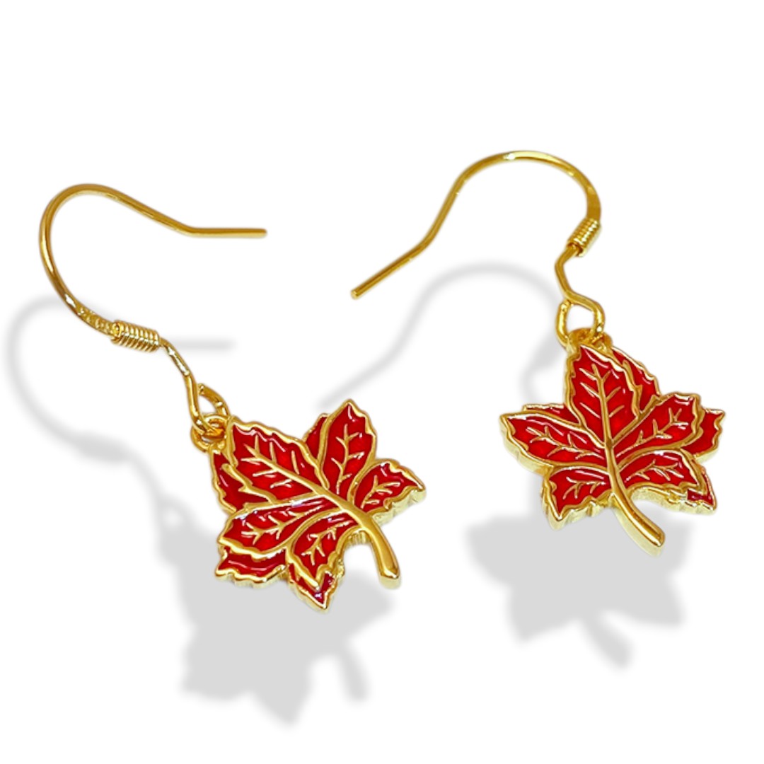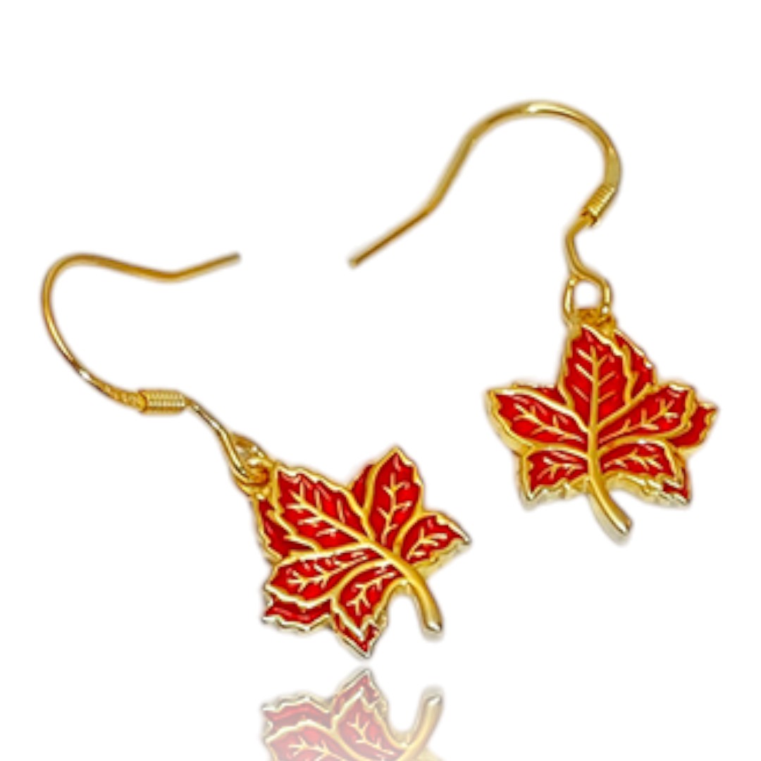 Embrace elegance and nature’s artistry with our 18K Gold Plated Red Maple Leaf Hanging Earrings. Crafted from fine sterling silver and adorned with lustrous, vibrant red enamel, each earring is a harmonious blend of sophistication and natural beauty. The maple leaf design symbolizes strength and renewal, making these earrings a meaningful addition to any jewelry collection.