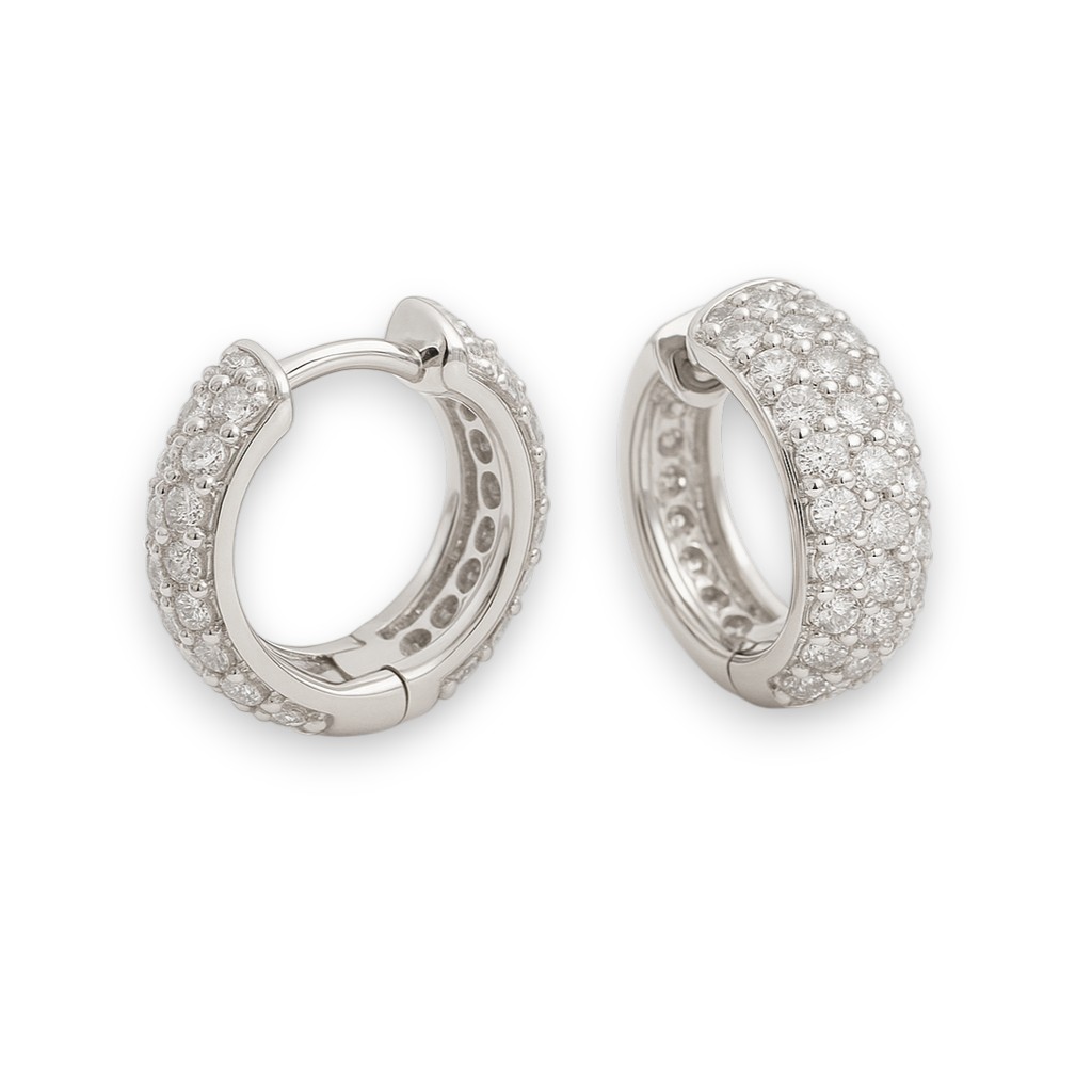 Elevate your elegance with our exquisitely crafted Silver Plated Cubic Zirconia Hoop Earrings. Designed for those who appreciate sophistication, these hoops feature a lustrous silver plating that captures the light beautifully. Each earring is adorned with high-quality, precisely cut Cubic Zirconia stones, offering a dazzling brilliance akin to real diamonds.