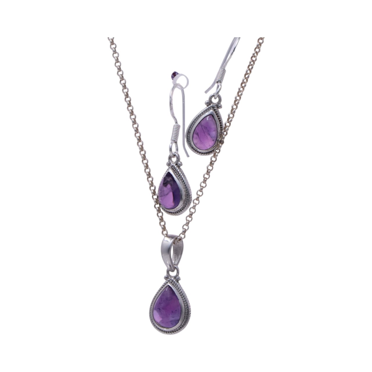 Sleek and Stunning Sterling Silver Amethyst Pendant and Earrings: The Perfect Tear Drop Set