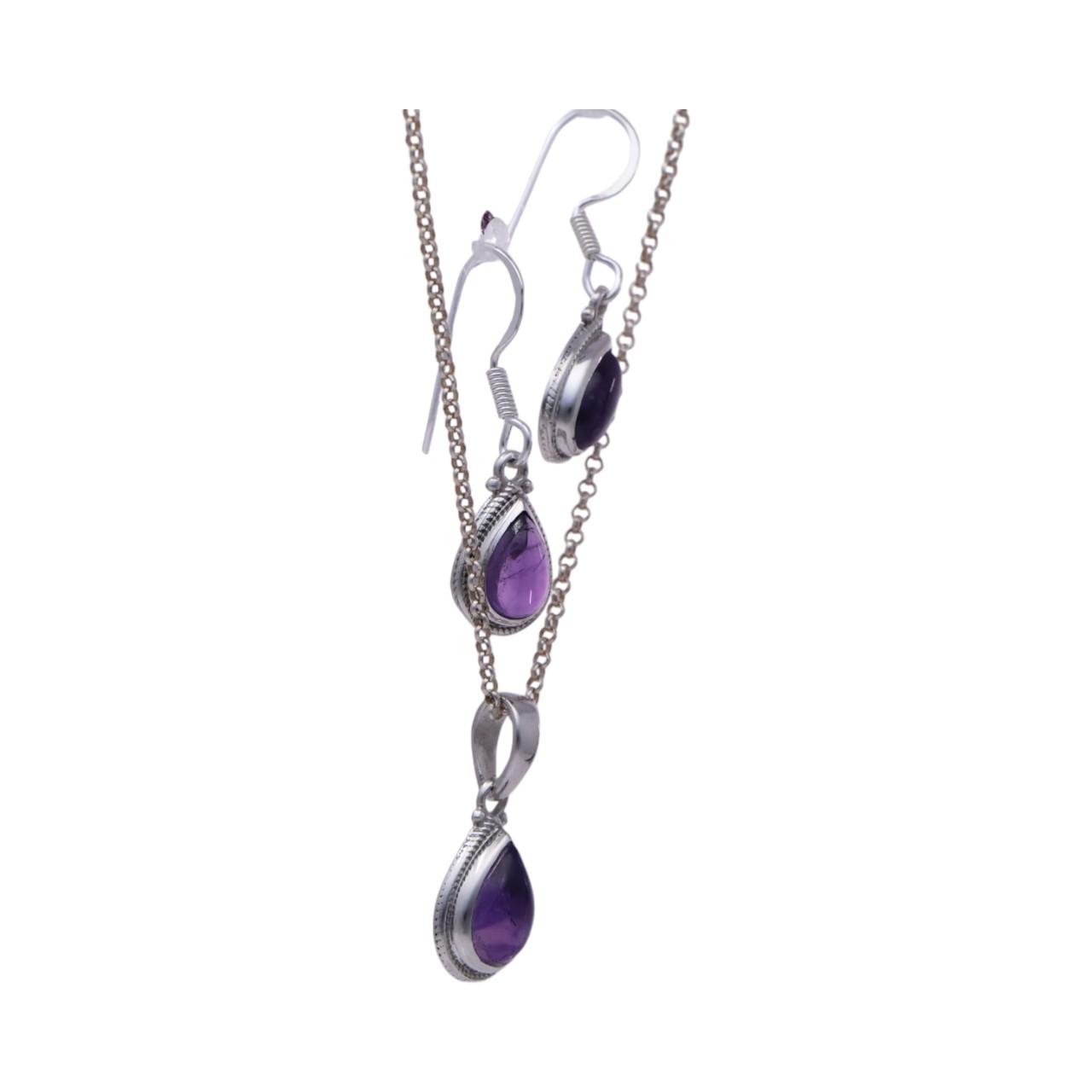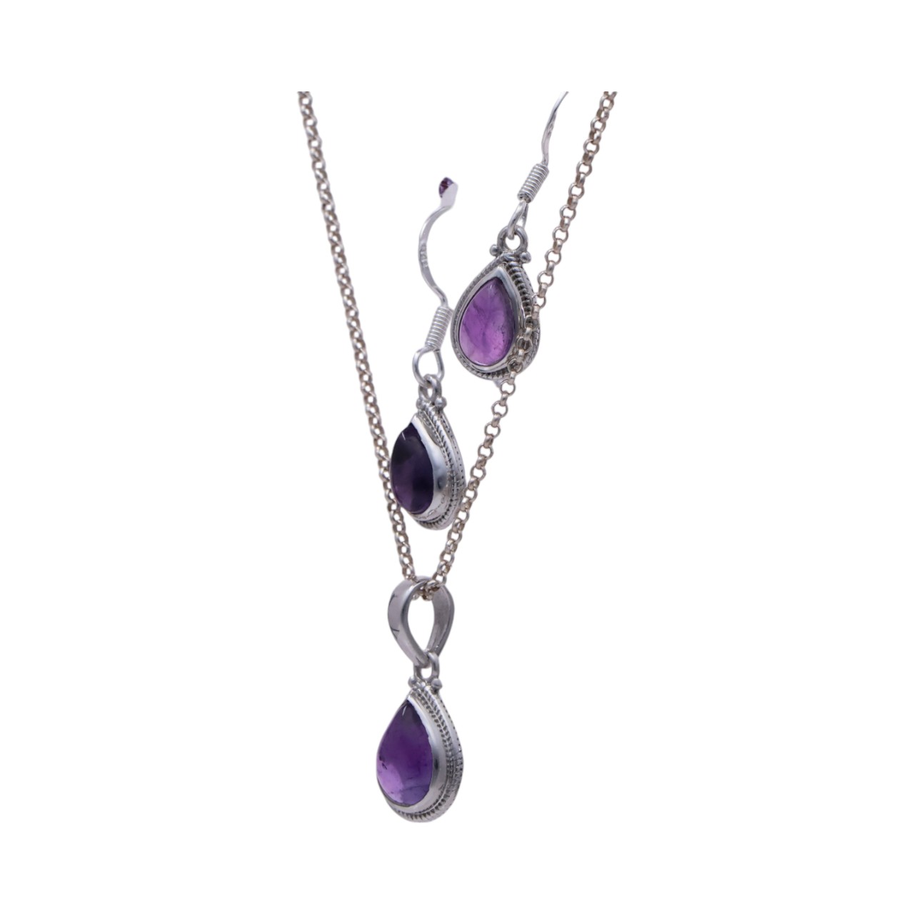 Introducing our stunning sterling silver pendant and earrings amethyst set, the perfect addition to any jewelry collection. Crafted with high-quality sterling silver and adorned with dazzling amethyst stones, this set exudes elegance and charm. With its versatile design, it can effortlessly elevate any outfit. The luxurious and timeless look of this set makes it the ideal choice for any occasion. Surprise your loved ones with this exquisite set, or treat yourself to its undeniable beauty. Elevate your style with our sterling silver pendant and earrings amethyst set today.