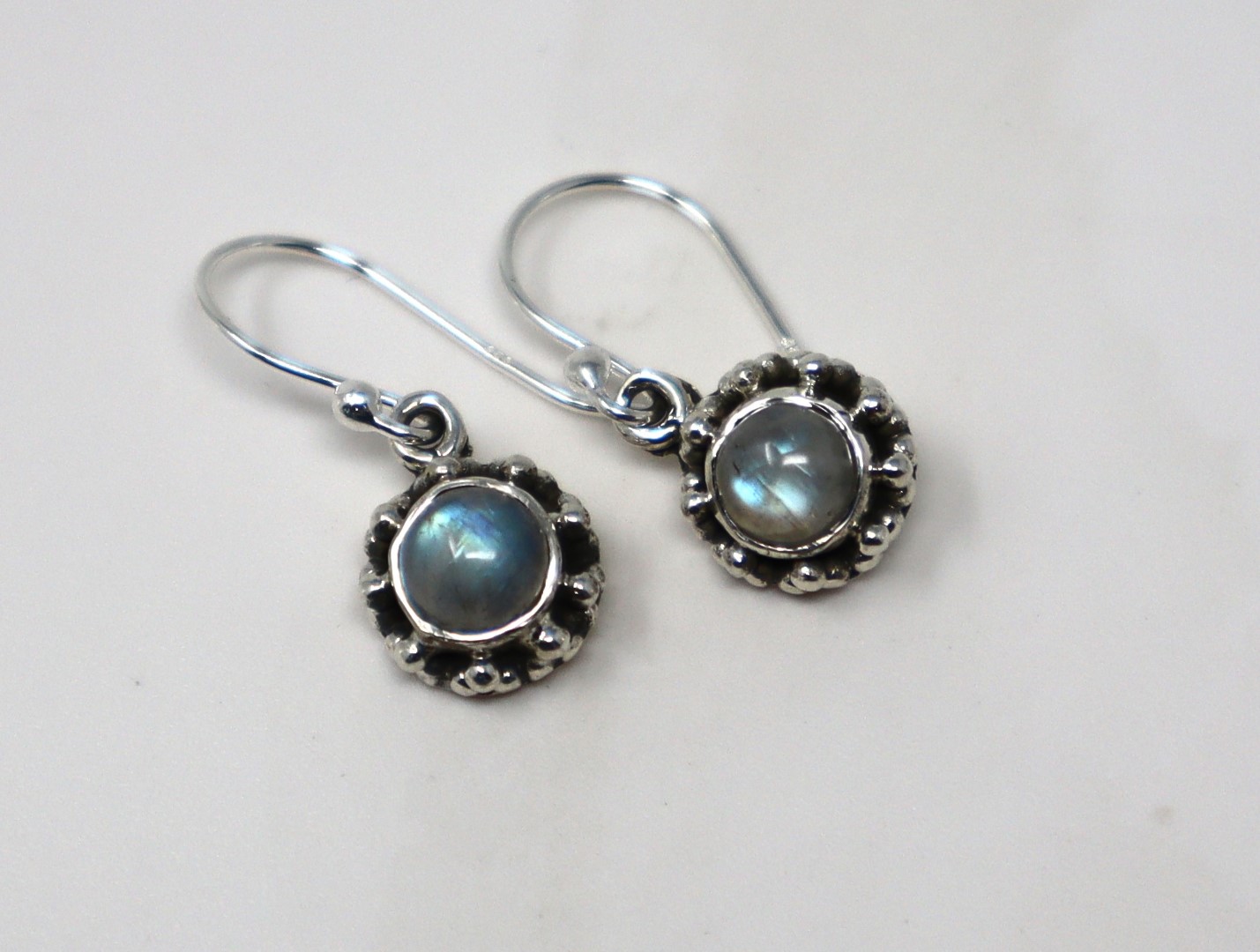 - Expertly crafted with authentic Moonstones, each earring shimmers with the mystical play of reds, blues, and purples that striking Moonstones are known for.