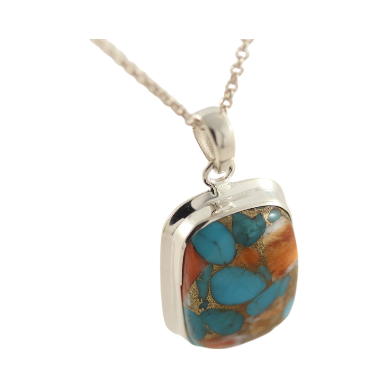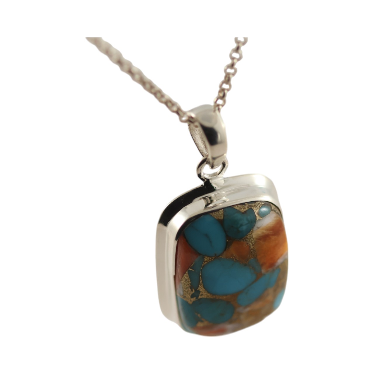 Introducing the Oyster copper turquoise Crystal Pendant Sterling Silver – a true masterpiece that combines the magnificent powers of crystals with the elegance of sterling silver. This pendant will effortlessly elevate any outfit and capture the hearts of crystal lovers. Handcrafted with precision, this pendant features a mesmerizing oyster copper turquoise crystal at its center, emitting soothing energies that promote peace and balance in your mind and spirit. Its intricate sterling silver frame adds a touch of glamour and exquisite detail, making it a statement piece that will undoubtedly turn heads. Not only is this pendant visually striking, it also carries numerous benefits such as boosting your confidence and enhancing your communication skills, making it a must-have for any social or professional setting. Its versatile design allows it to be paired with any outfit, whether it’s a casual day out or a formal event. Experience the harmonious blend of energy and style with the Oyster copper turquoise Crystal Pendant Sterling Silver. Indulge in its majestic beauty and feel the positive vibes it brings.