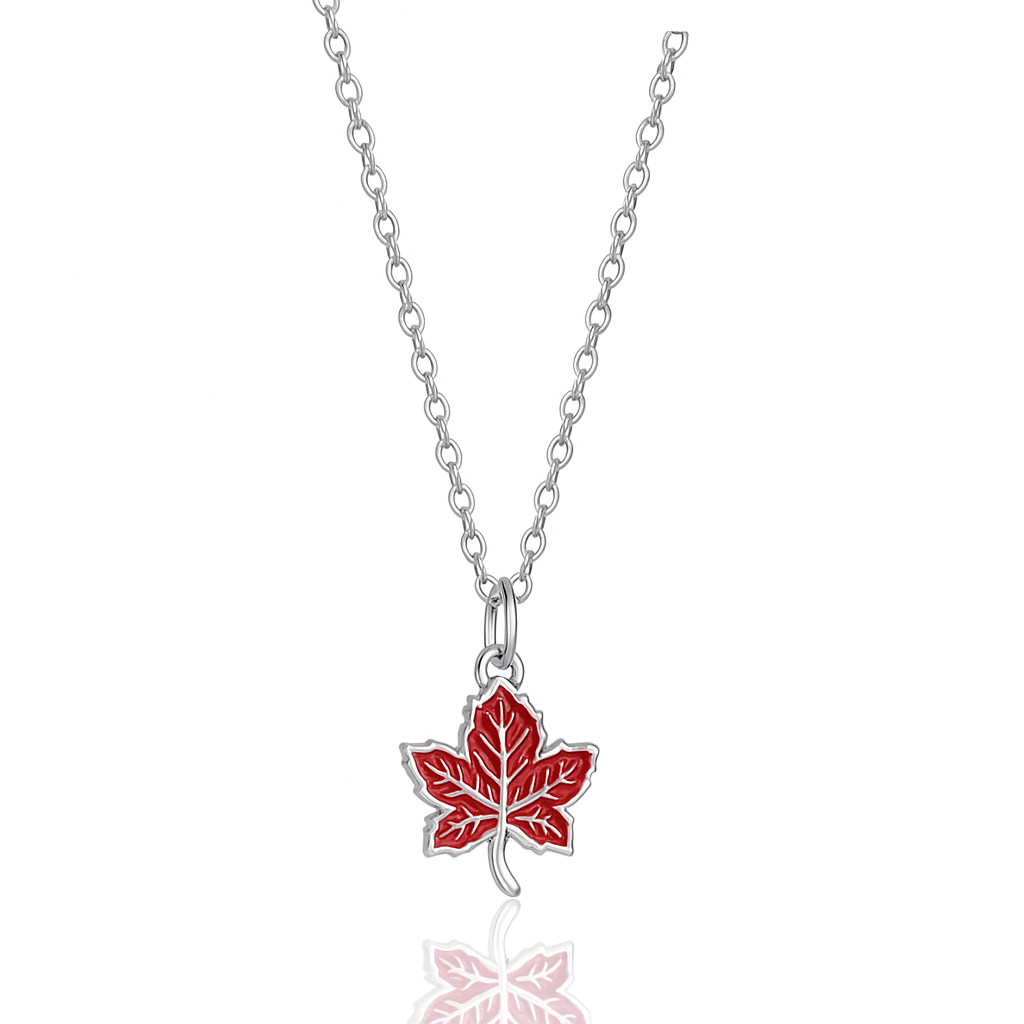 White Gold Plated Maple Leaf Pendant Necklace – Red Enamel Sterling Silver Jewelry for Women