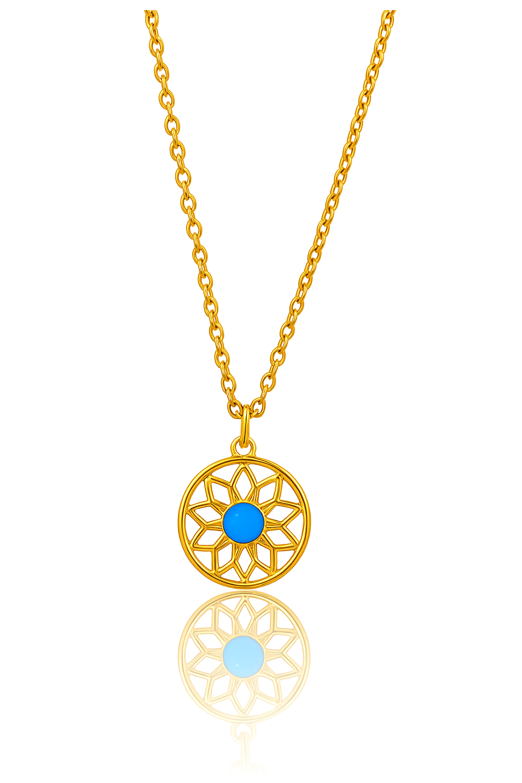 Blue Stone Dreamcatcher Necklace – 18K Gold Plated Sterling Silver Pendant, Unique Featherless Jewelry Gift