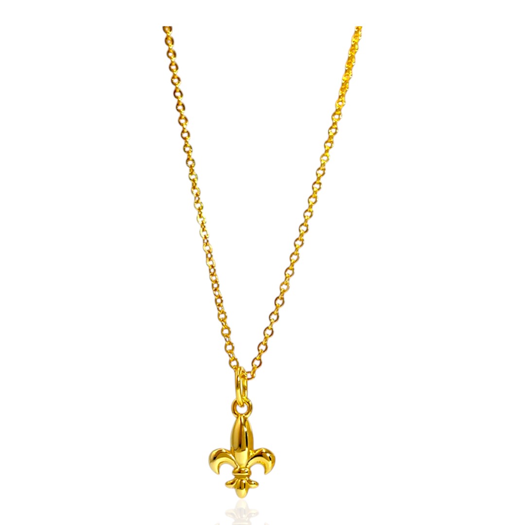 Elegant Fleur de Lys Pendant – 18K Gold Plated Sterling Silver French Jewelry Necklace